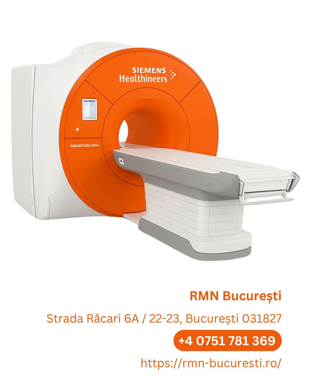 Clinica RMN Bucuresti dispune de echipamente de ultimă generație, inclusiv sistemul RMN Siemens Magnetom Altea 2024 cu diametru de 70 cm, care oferă un spațiu mai generos pentru pacienți comparativ cu sistemele convenționale, reducând semnificativ senzația de claustrofobie.