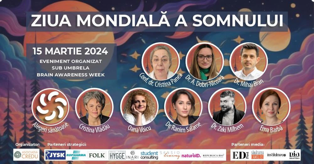 În contextul Zilei Mondiale a Somnului 2024, Asociația Credu organizează conferința “Alegeri sănătoase: Somnul” dedicată informării și educării privind importanța somnului pentru sănătatea noastră fizică și mintală. Evenimentul este parte integrantă a Brain Awareness Week 2024 și are ca obiectiv atragerea atenției asupra beneficiilor unui somn sănătos și a problemelor legate de tulburările de somn.